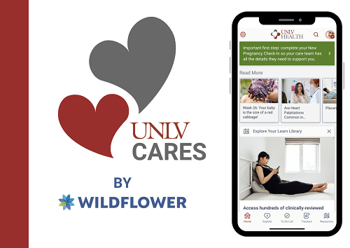 UNLV Health OB patients can get started by downloading the UNLV Cares by Wildflower app in the Apple App Store and Google Play Stores. Current patients will receive invitations from their OB to join the app to access additional services.